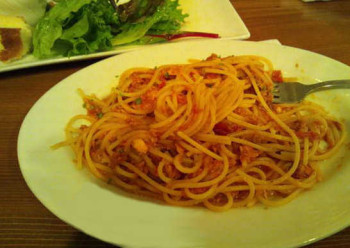 2013年4月25日(木)  市役所に用があって出かけたら昼時を過ぎてしまい、お腹がグーグー言い出した。府中本町駅の西側あたりに安くてうまいイタメシ屋があると聞いたのを思い出し、足を延ばすことにした。  ROUND1側の…