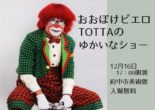 子供たちの人気者、おおぼけクラウンのTOTTAが府中市美術館にやってくる! 大人も子供も楽しめるゆかいなショーの始まり、始まり。ご家族でぜひお出かけ下さい。 とき:2017年12月16日(土) 17:00開演  ところ:…