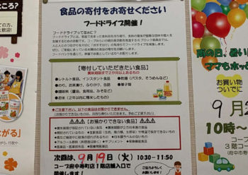 2017年8月24日(木)  甲州街道と府中街道の交差点にある「コープみらい」は駅から少し離れているが、裏から寿町公園に抜けられるので散歩のついでにときどき立ち寄る。  入り口の掲示板に今日たまたまフードドライブのポスタ…
